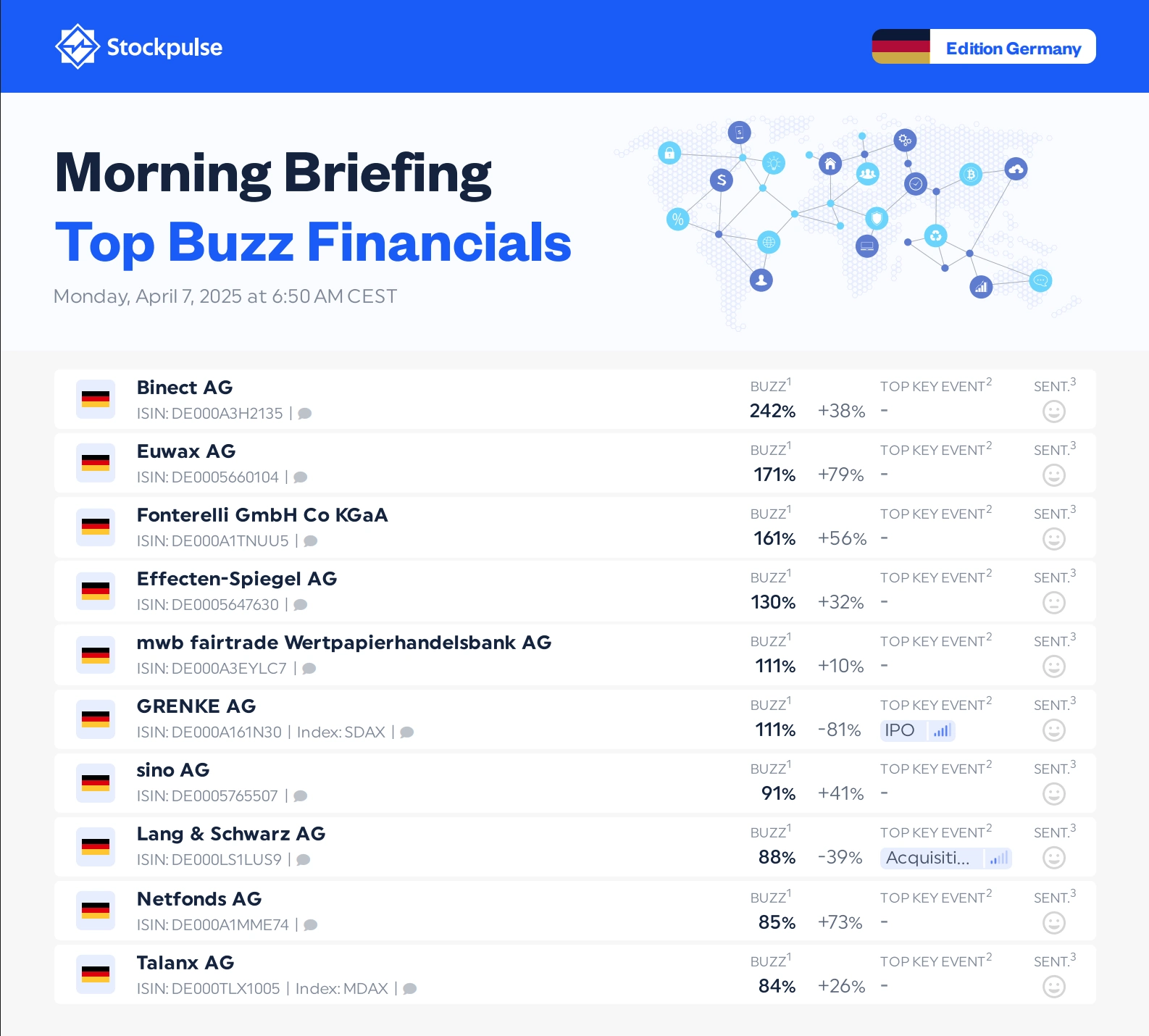 Our Morning Briefings are daily stock newsletters that highlight the most discussed stocks and trending topics across social media. Designed for investors and professionals, it delivers fast, relevant insights tailored by asset class, region, industry, market universe, or language—offering a customizable snapshot of market sentiment.